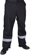 Modelo en tela poplin, 100% Polyester con reflectante de 2,5 Cms. en parte baja del pantalón, elasticado en la parte de la cintura, dos bolsillo en el costado de la pierna y dos bolsillos traseros con tapeta y ajuste de velcro. Vestuario modelo unisex.